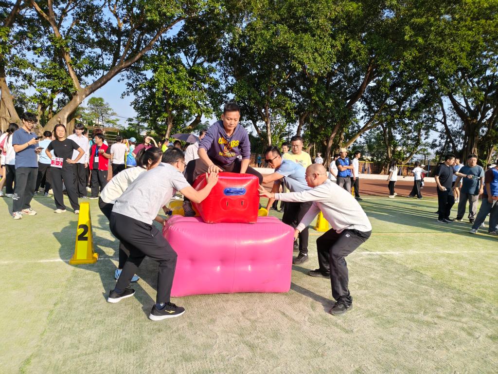 集体项目中,公司教职工尽显团队风采。“八仙过海”项目里,队员们配合高效、技巧娴熟,成功摘得桂冠;“多人多足”项目中,大家步调一致、默契十足,快速冲线荣获季军;“河马过桥”项目中,队员们全力以赴、永不言弃,展现出顽强斗志,最终取得第六名。