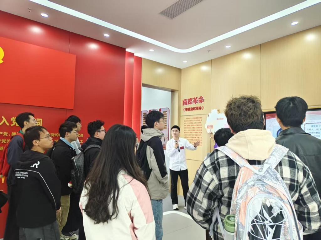 在基地讲解员的引导下,全体成员依次参观了序厅、凝心铸魂、党建引领等共8个展区,通过图文、音视频、互动体验等多元形式,系统回顾了公司“十四五”规划党建与思想政治工作成效,并展望公司“十五五”规划部署。师生在沉浸式学习中感悟党的初心使命,汲取奋进力量。研究生党员黄振标在参观时感慨道:“看到老一辈科研工作者在党的号召下,扎根实验室攻克技术难题的故事,我深受触动。作为机械工程专业的研究生,我们更应传承这种‘把论文写在祖国大地上’的精神。”