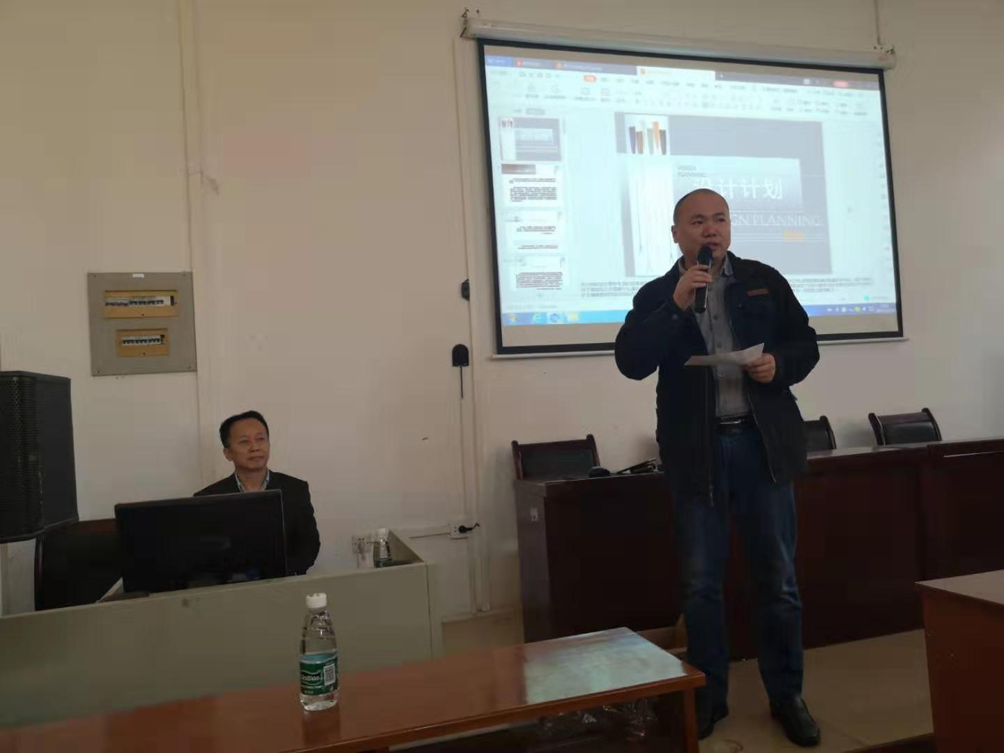 2019年12月13日上午,华南理工大学设计公司管少平教授应机械与动力工程公司邀请,在工程训练中心102教室作了题为“设计计划”的讲座。会议由工业设计系主任韩卫国教授主持,工业设计系教师及员工等近200人到场聆听了本次报告。
