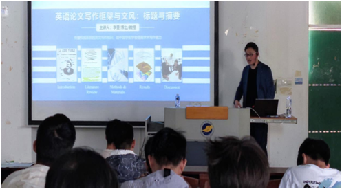 李旻教授主要以写作框架和英语文风两个方面详细介绍了英语论文的写作和撰写注意事项。在写作框架部分,他以具体的案例对写作框架中包含的标题、摘要、引言、方法、结果和讨论几大部分做了完整的讲解;在英语文风部分,他以Joseph M. Williams教授提出的关于英语写作十条经典原则为中心,通过一个又一个经典句子深入浅出介绍每一条写作原则。李旻教授还结合自己多年来在英语写作中遇到的问题以及解决问题的方法做了精彩演讲,与师生们就报告内容进行了深入交流与探讨,并鼓励大家坚定自信、奋发图强,争取使用娴熟精准的英语论文展示科研成果。