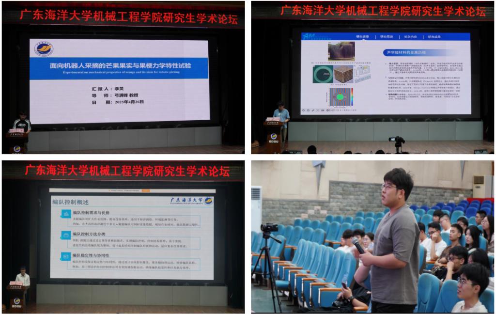 论坛期间,来自多个研究方向的研究生围绕海洋机器人技术、先进制造及其检测、工程装备材料腐蚀与防护、数控装备自动化等前沿课题,开展了形式多样、内容充实的专题报告与深入交流。报告内容涵盖了基础理论研究、关键技术攻关、工程应用探索等多个层面,充分展现了公司研究生扎实的专业功底与良好的科研素养。同时出席论坛的研究生积极与会专家进行学术问题讨论和交流。
