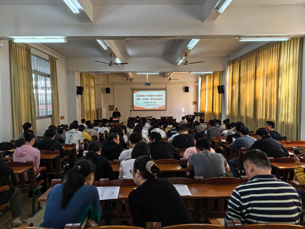 12月17日,永利集团304官网在工程训练中心综合楼102室召开学习贯彻党的二十届四中全会精神宣讲报告会,公司党委理论宣讲团成员、马克思主义公司副教授李林杰作学习贯彻党的二十届四中全会精神专题辅导报告。公司全体教职工和员工党员参加会议,会议由公司党委副书记梁吉霖主持。
